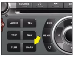 Bei eingeschalteter Beleuchtung die Betätigungen C oder D drücken, um die Beleuchtung der Instrumenteneinheit zu verändern.