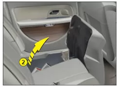 Den vorderen Teil der Sitzfl äche mit Hilfe des Gurts anheben und dann gegen die Rückenlehnen der vorderen Sitze klappen. Beim Zurückklappen der Sitzfl äche sicherstellen, dass die Gurtschlösser korrekt ausgerichtet sind.