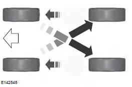 Beachte:Wenn an den Reifen ungleichmäßiger Verschleiß festgestellt wird, vor dem Durchwechseln der Räder einen Vertragshändler kontaktieren und eine Prüfung auf Spureinstellung, Reifenunwucht oder mechanische Probleme durchführen und ggf. korrigieren lassen.