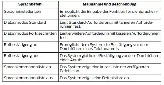 Zum Durchführen eines Anrufs drücken Sie die Taste für die Sprachsteuerung am Lenkrad und sprechen Sie nach der Aufforderung: Sprachbefehl Maßnahme und