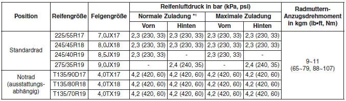*1: mit Reifen R17 *2: mit Reifen R18 *3: mit Reifen R19