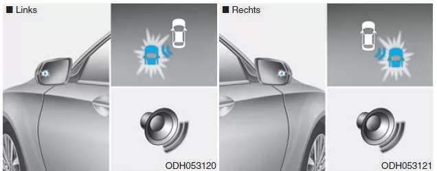 Wenn der Blinker gesetzt ist und sich ein Fahrzeug im Warnbereich befindet.