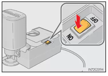 - Ist der Reifendruck nach 10-minütigem Aufpumpen (35 Minuten bei niedrigen Temperaturen) bei eingeschaltetem Schalter noch immer niedriger als der vorgeschriebene Wert, ist der Reifen zu stark beschädigt, um ihn reparieren zu können.