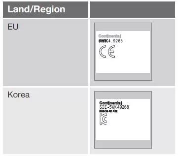 Die Typengenehmigung für das Transponderschlüsselsystem ist in der Tabelle zu lesen.