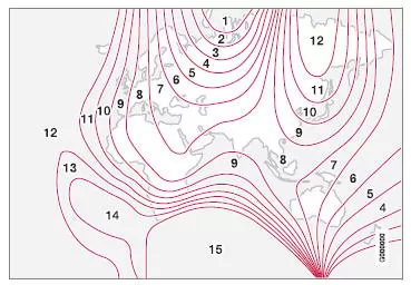 Die Erde ist in 15 Magnetzonen eingeteilt. Der Kompass sollte kalibriert werden, wenn das Fahrzeug durch mehrere Magnetzonen bewegt wird.