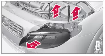 Zum Austauschen der Scheinwerferglühlampen zunächst den Scheinwerfer vom Motorraum aus lösen und den kompletten Scheinwerfer herausnehmen.